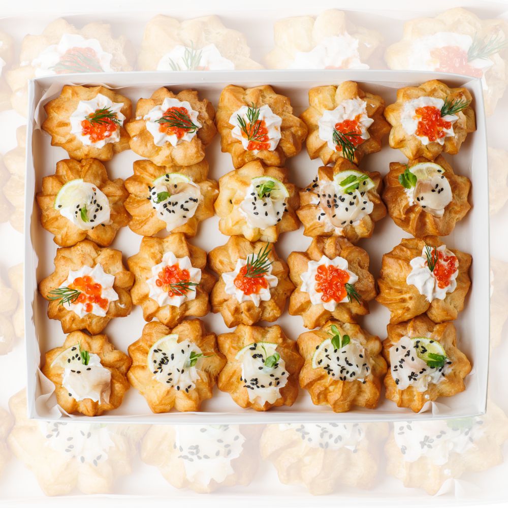 - Профітролі з мусом масляної , - Профітролі з мусом лосося та червоною ікрою.
